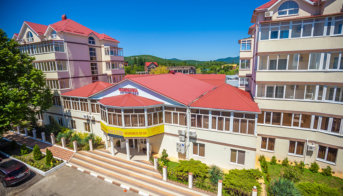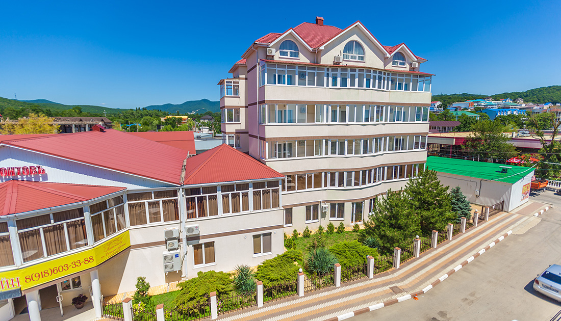 Комфортабельный отель для семейного отдыха с видом на Черноморское побережье и вершины Кавказского хребта. Отель расположен в поселке Лермонтово в 120 км от аэропорта г. Краснодар и в 65 км от ж/д вокзала г. Туапсе.
