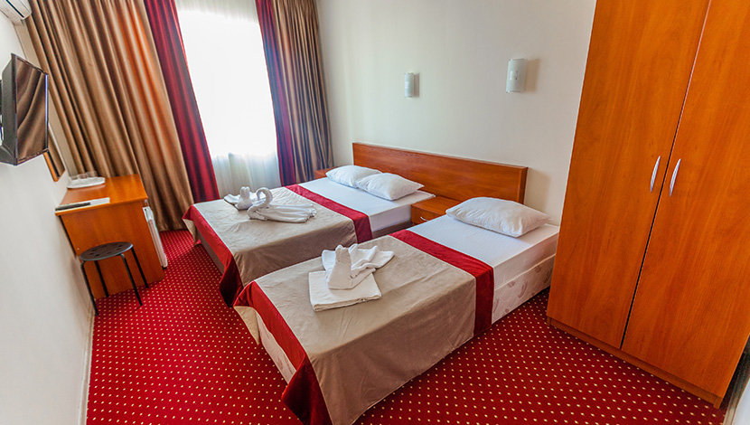 На территории отеля имеются: кафе, бассейн с подогревом, детская площадка и батут, детская комната, автостоянка. Гостям доступны услуги прачечной. Однокомнатные и двухкомнатные номера оснащены всем необходимым.